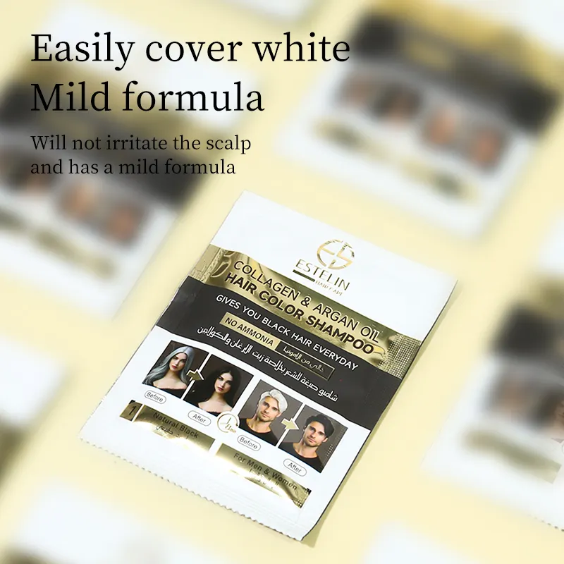 ESTELIN Collagen & argan oil hair color shampoo Sachets (Natural black) – 10pcs/Box