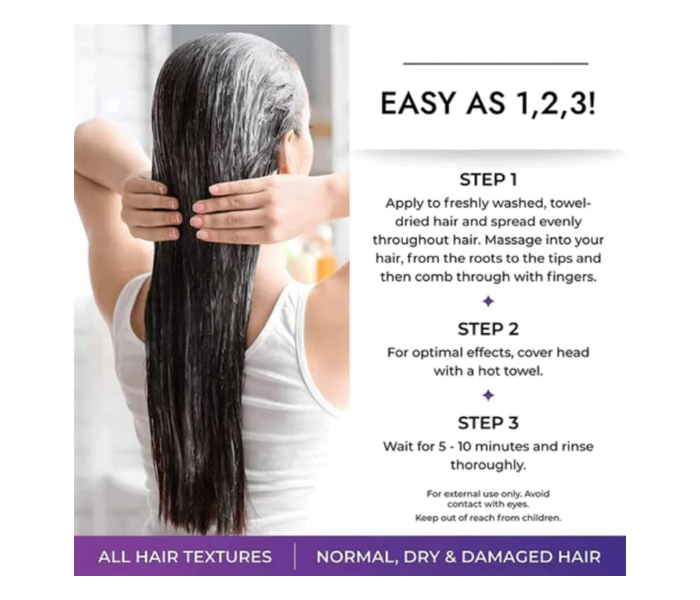 - It serves as a shield, protecting hair from future harm caused by environmental stressors or styling routines. By providing intense nourishment and hydration, it keeps hair resilient and healthier-looking, promoting a radiant shine and vibrant appearance.