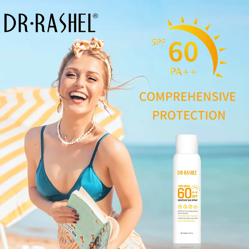 Dr. Rashel Anti-Aging and Moisture Sun Spray SPF 60 is a protective sunscreen spray designed to protect the skin from the harmful effects of UV rays.