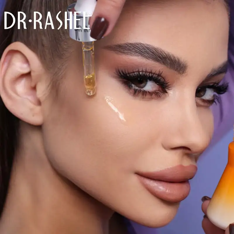 • Take a small amount of the Dr Rashel Vitamin C & Retinol Day & Night Face Serum onto your fingertips.