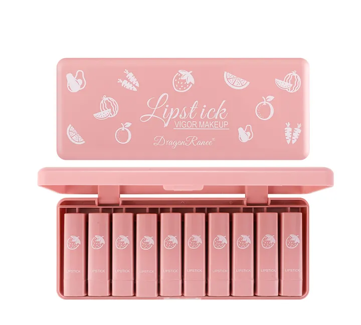 Dragon Ranee 10 Pieces Velvet Matte Pink Lipstick Set | Long Lasting Makeup Waterproof Lip Gloss for Girls & Womens