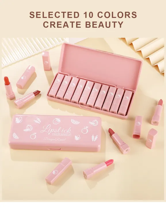 • Dragon Ranee 10 Pieces Velvet Matte Pink Lipstick Set | Long Lasting Makeup Waterproof Lip Gloss for Girls & Womens
