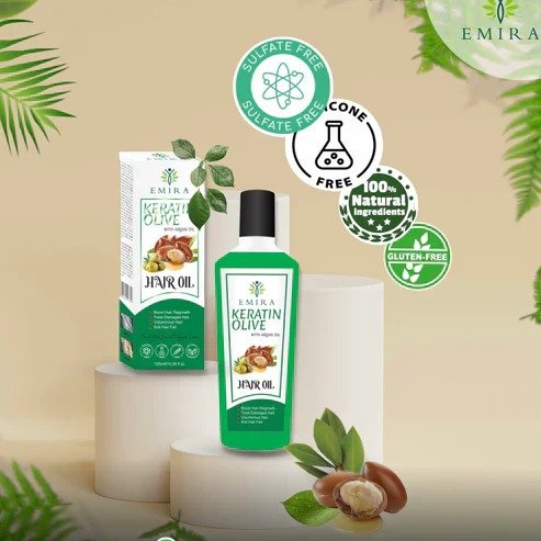 EMIRA Keratin Olive with Argan Hair Oil For Boosting hair growth,Damaged hair,Volumirous hair,Anti hair fall – 120ml