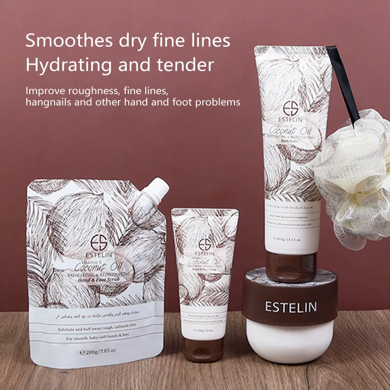 Benefits : Coconut oil formula hand & foot scrub with Vitamin E uses natural coconut sugar to exfoliate and buff away rough, callused skin for smooth, baby-soft hand & feet. Are your feet rough, dry or cracked? Do you have tough heels or callused skin on your feet? Using coconut oil for your feet can help deeply restore, replenish and soften tired, worn out feet, helping to make them baby smooth