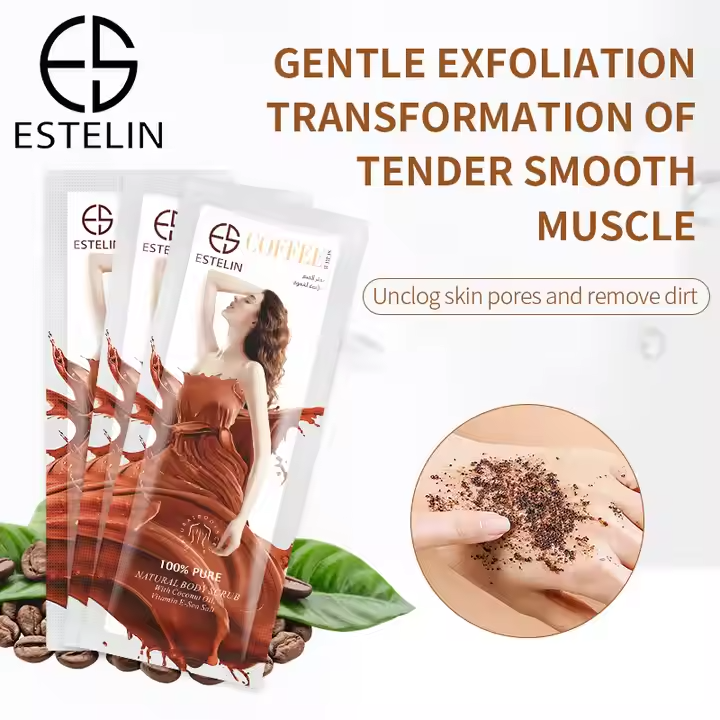 Estelin Coffee 100% Pure Natural Body Scrub by Dr.Rashel is a pack of seven individual sachets containing an invigorating coffee-based body scrub. This natural exfoliant is formulated with 100% pure coffee to provide a rejuvenating and aromatic experience for your skin. Coffee grounds are known for their excellent exfoliating properties, helping to remove dead skin cells and promote smoother, softer skin.