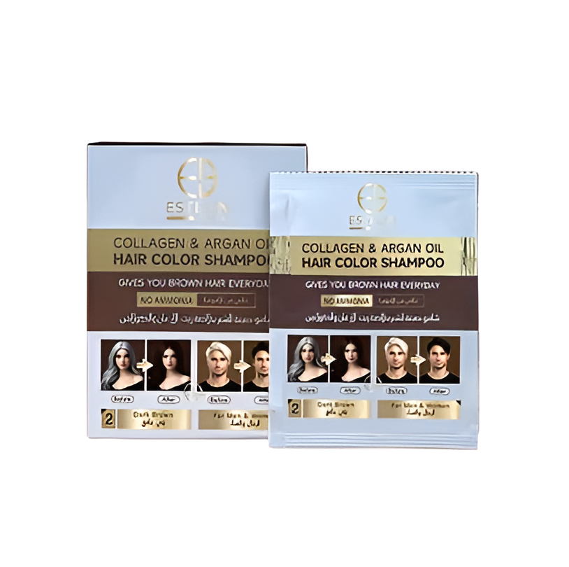 ESTELIN Collagen & argan oil hair color shampoo Sachets (Dark Brown) – 10pcs/Box
