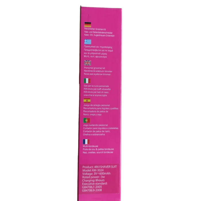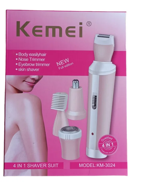 Kemei 4IN1 Shaver Suit KM-3024 , Body easily hair , Nose trimmer , Eyebrow trimmer , Skin shaver , Carbon steel cutter head , Push type switch , Charging cord